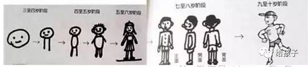 上图是三岁到九岁孩子对人像画方面的自然发展过程。