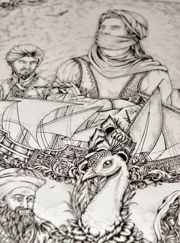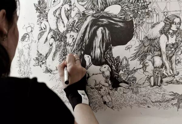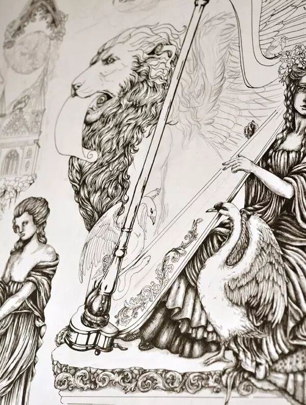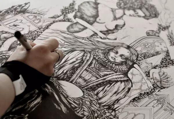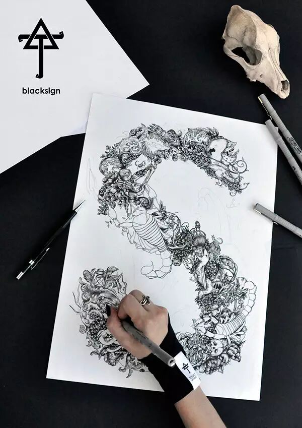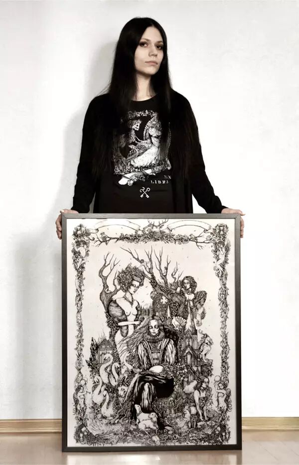 俄罗斯神级别的插画代表Theoretical Part的黑白插画作品。Theoretical Part还拥有自己的服饰品牌,而且还扩展到刺青、饰品等多个领域。