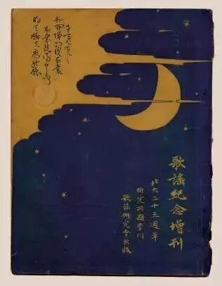 《歌谣纪念增刊》,儿歌及研究论文集。鲁迅特意用深蓝色封面表示月夜,勾勒几缕闲云和一弯斜月,来映衬内容的诗意。