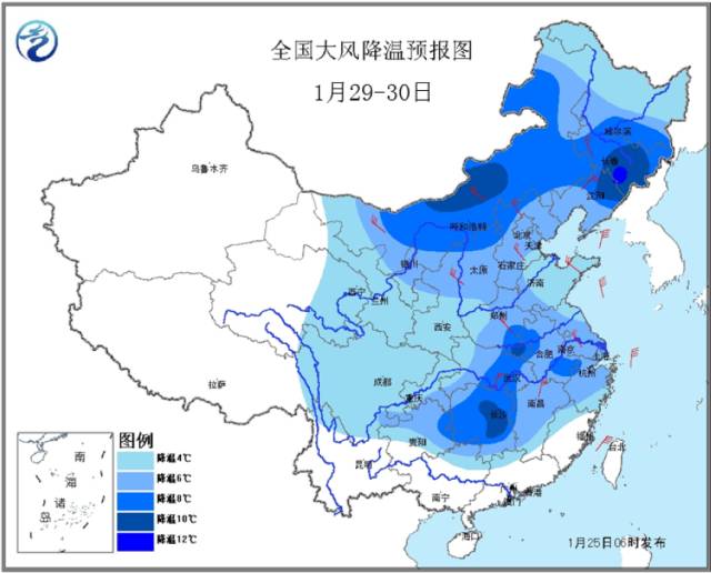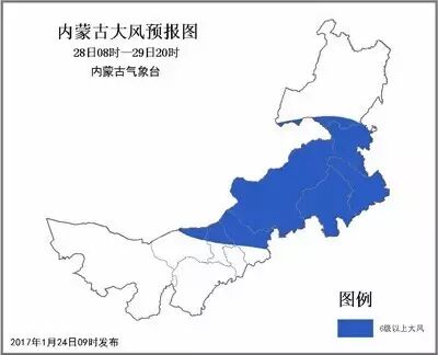 据内蒙古气象台预计,2017年春节假日期间,全区将有一次冷空气活动,28—30日全区大部将出现降温、大风天气,东部地区伴有降雪。内蒙古气象台已于1月24日16时00分发布寒潮蓝色预警信号。