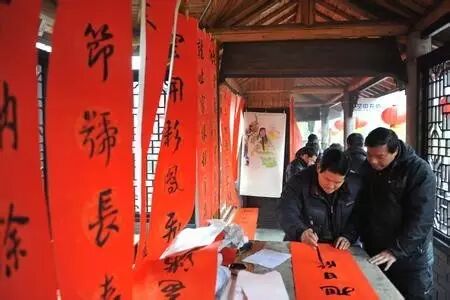 春联也叫门对、春贴、对联、对子、桃符等,以工整、对偶、简洁、精巧的文字描绘时代背景,抒发美好愿望,是我国特有的文学形式。每逢春节,无论城市还是农村,家家户户都要精选一副大红春联贴于门上,为节日增添喜庆气氛。这一习俗起于宋代,从明代开始盛行。