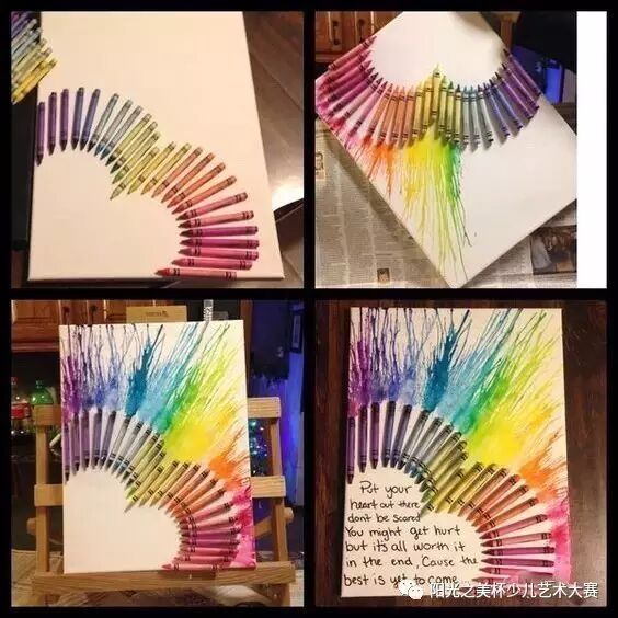 蜡笔是蜡做的,质地比较硬,也正因如此,画出来的画无论层次感感还是质感都不如油画棒那么丰富,歪果艺术家利用蜡遇热会融化的特点,探索出了全新的蜡笔画,蜡笔画的效果也效果瞬间高大上起来,一盒蜡笔加一个吹风机就搞定了,超简单!