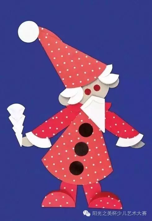 圣诞老人也来凑热闹啦!他也想用圆形卡纸做一个自己,没想到还真成功了呢!