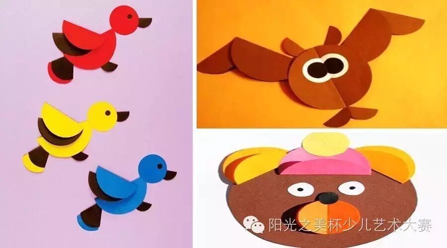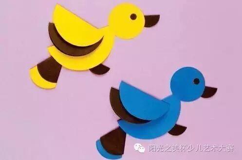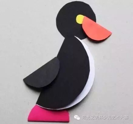 圆形卡纸贴一贴,再用黑色勾线笔画一些圆圈和线条,栩栩如生的小鸟就完成啦~