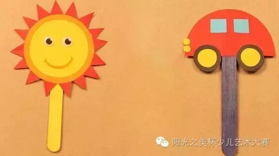 圆形卡纸加上雪糕棒,就可以做出可爱的太阳公公、萌萌的汽车书签啦~