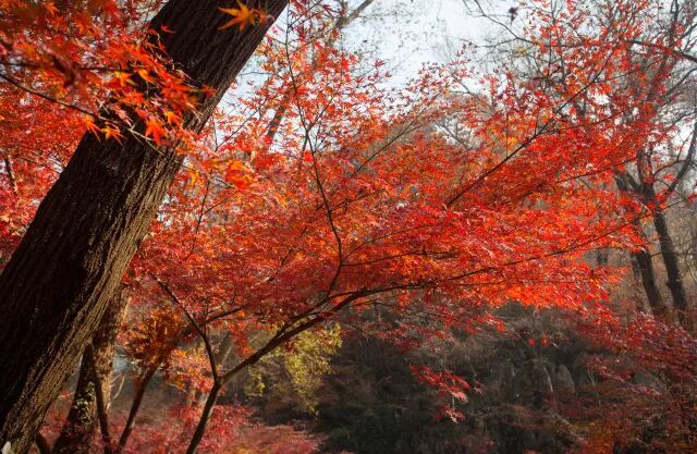吉林红叶谷的红来自槭树。相传“槭”之古音与“色”略同,所以此树入秋变色之后,在民间有“色树”之名。