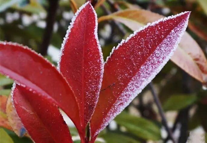 “霜降杀百草”,严霜打过的植物,一点生机也没有。这是由于植株体内的液体,因霜冻结成冰晶,蛋白质沉淀,细胞内的水分外渗,使原生质严重脱水而变质。“风刀霜剑严相逼”说明霜是无情的、残酷的。其实,霜和霜冻虽形影相连,但危害庄稼的是"冻"不是"霜"。有人曾经试验:把植物的两片叶子,分别放在同样低温的箱里,其中一片叶子盖满了霜,另一片叶子没有盖霜,结果无霜的叶子受害极重,而盖霜的叶子只有轻微的霜害痕迹。这说明霜不但危害不了庄稼,相反,水汽凝华时,还可放出大量热来,1克0℃的水蒸汽凝华成水,放出气化热是667卡,它会使重霜变轻霜、轻霜变露水,免除冻害。