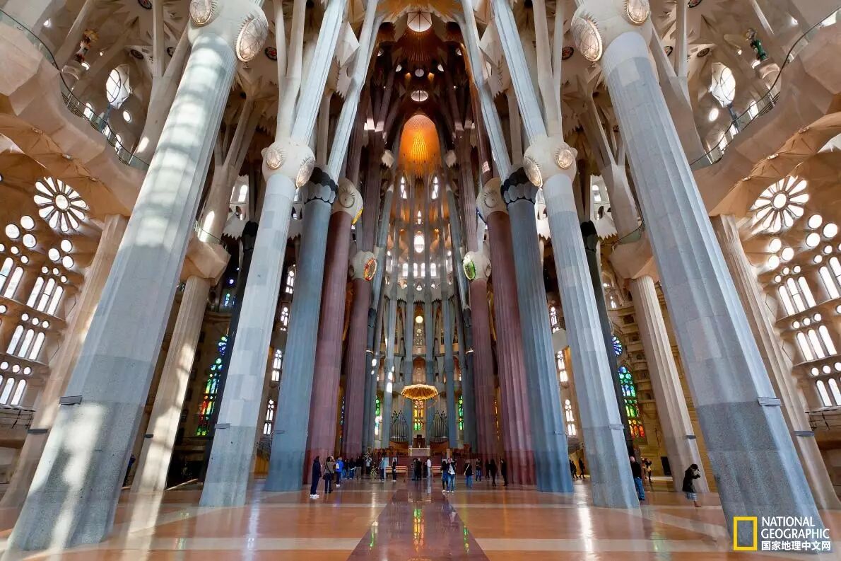 虽然安东尼•高迪早于1883年就接下了这个项目,但教堂的中殿直到2000年才完工。教堂的中厅仿照树干和分枝而建,支撑着高达45米的拱顶。进入教堂的人会感觉走进了一片巨大的森林,当然这也是高迪设计的初衷。