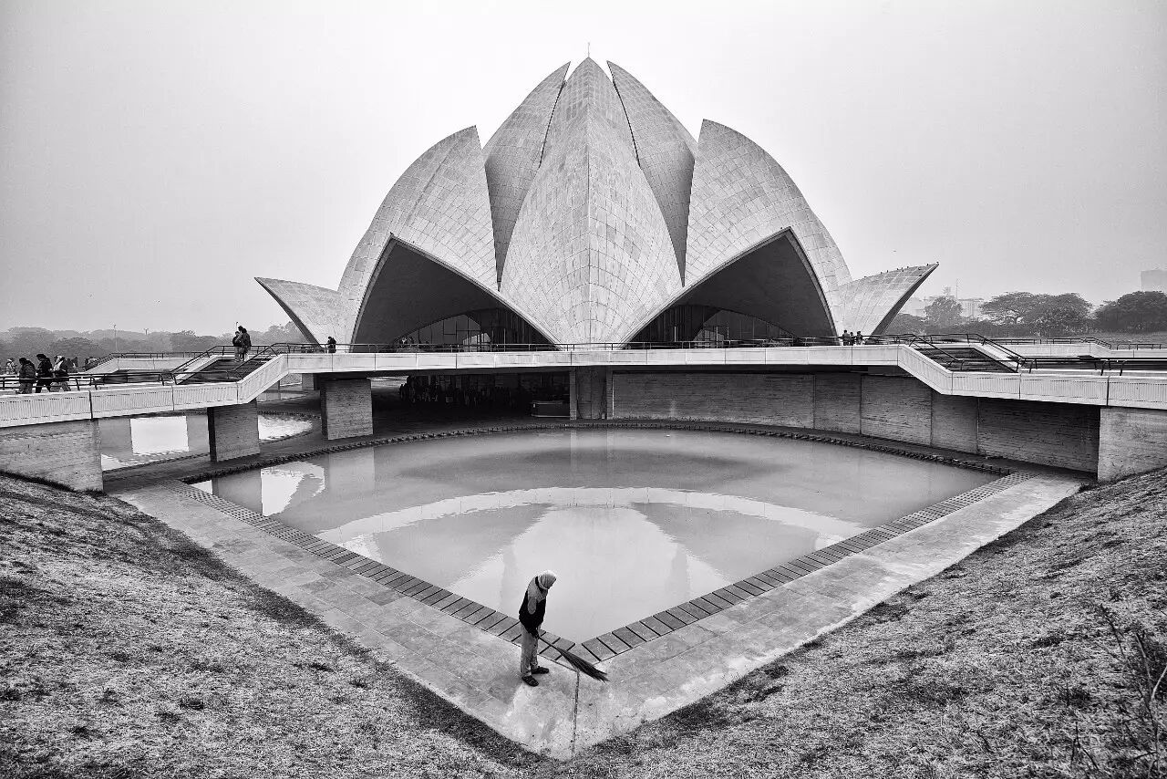 根据巴哈伊教教义,所有的礼拜场所都必须拥有九边形的圆状结构。其它巴哈伊教寺庙都通过圆顶设计达到了这一目的,而位于新德里的莲花寺看起来则与众不同。