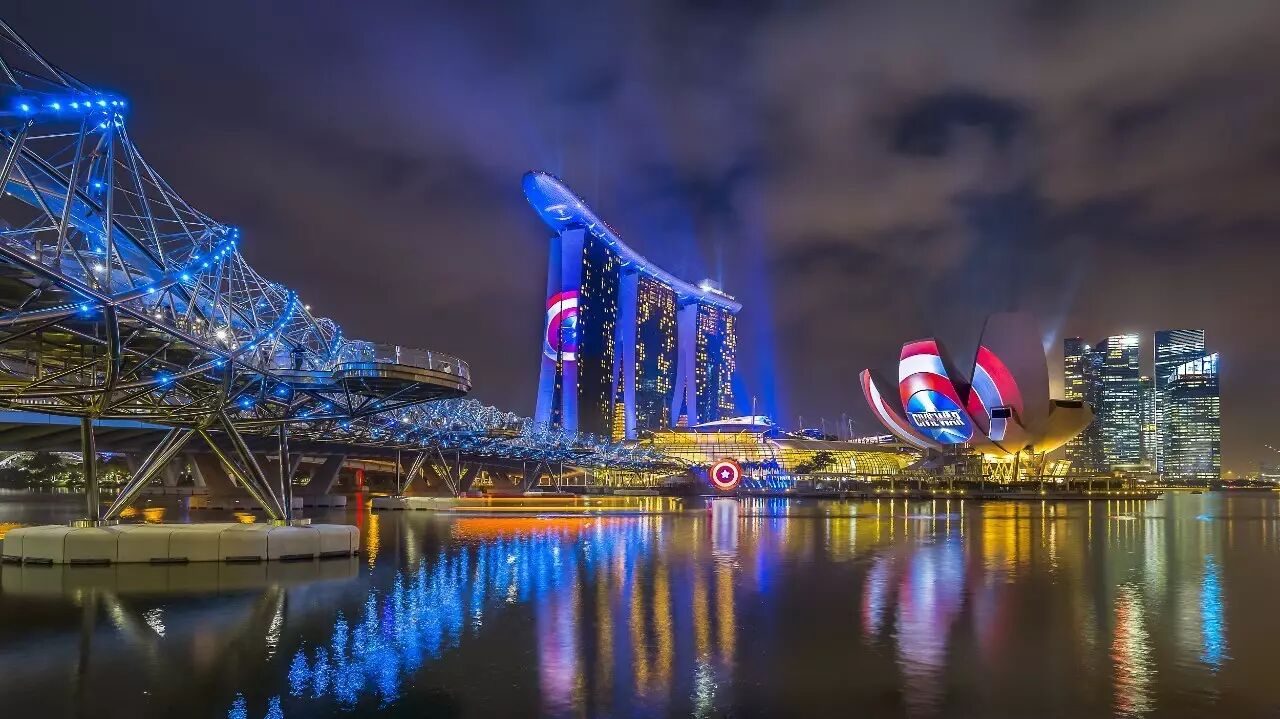 双螺旋桥是一座横跨滨海湾的人行桥,由新加坡Architects 61公司与澳大利亚的Cox集团和Arup公司联合设计,将著名的酒店、购物中心和艺术科学博物馆、滨海湾花园连接在一起。