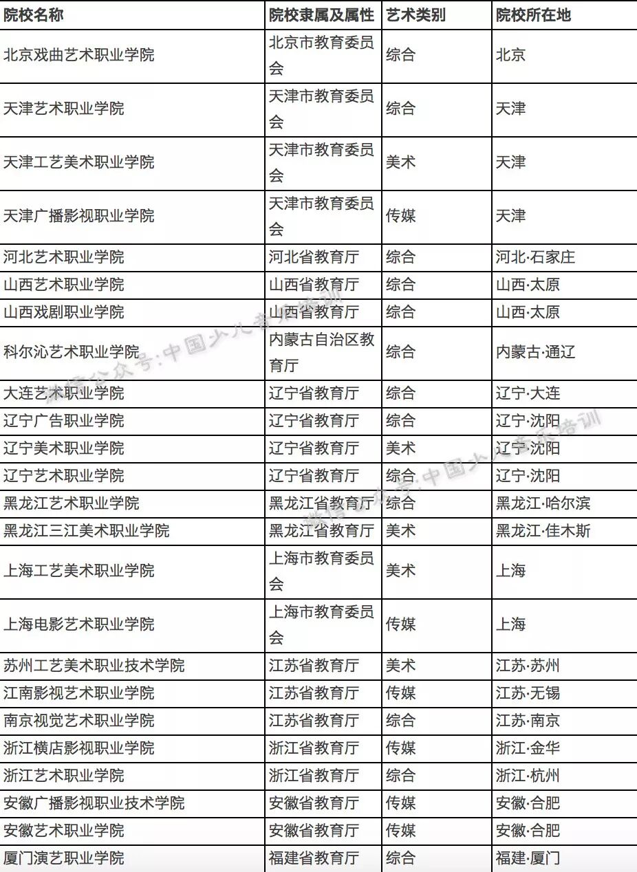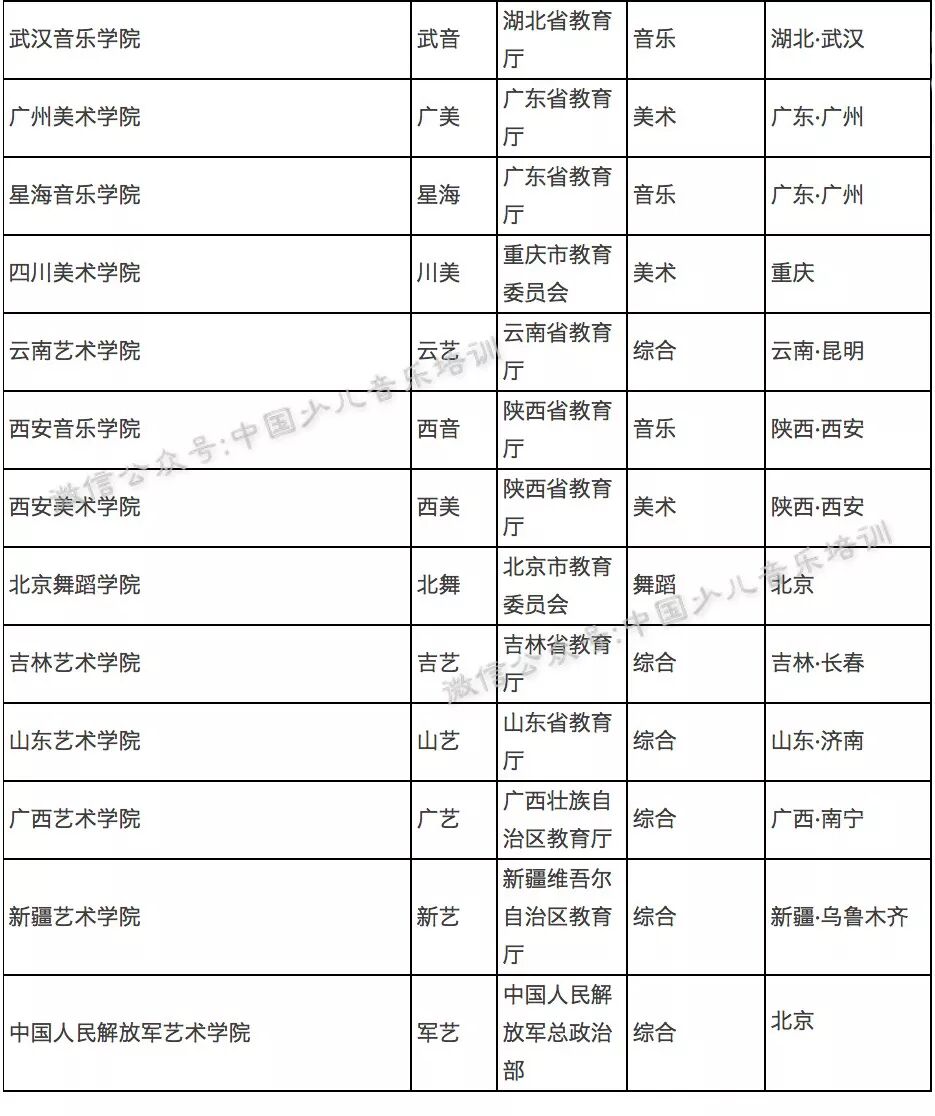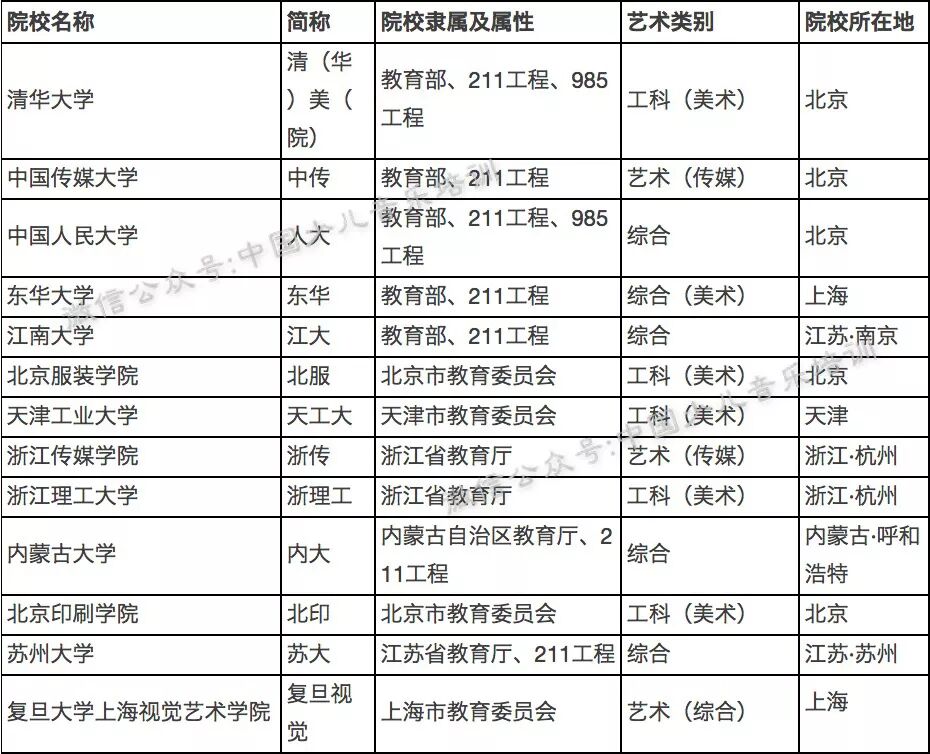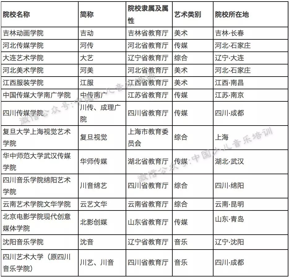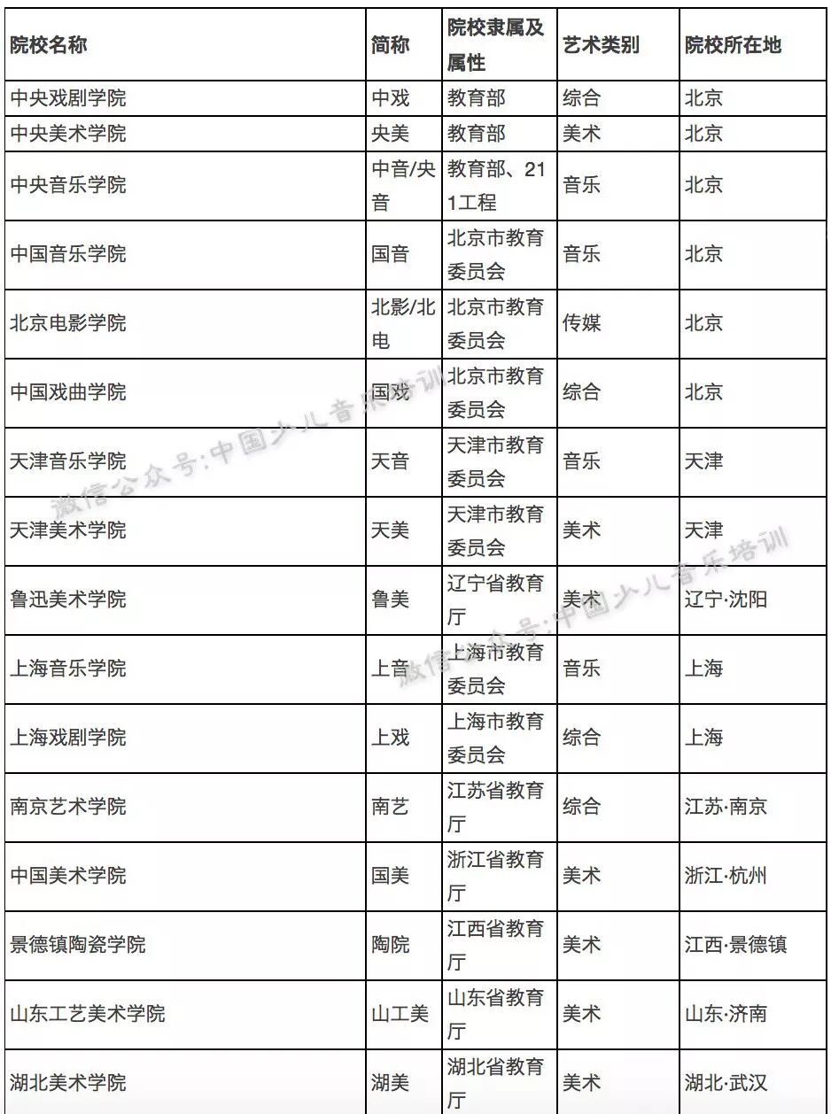 最全艺术院校分类表,艺考生人手一份!